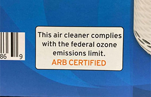 所有室内空气净化装置于在加州销售之前,需在产品包装上标识臭氧排放认证。“标识”是指产品包装上一个含有必要的认证声明的区域,声明清晰易读,与无关文字分开。它是包装上的印刷文字。2012年10月1日之后,所有包装均须以打印形式在上面显示必要标识。